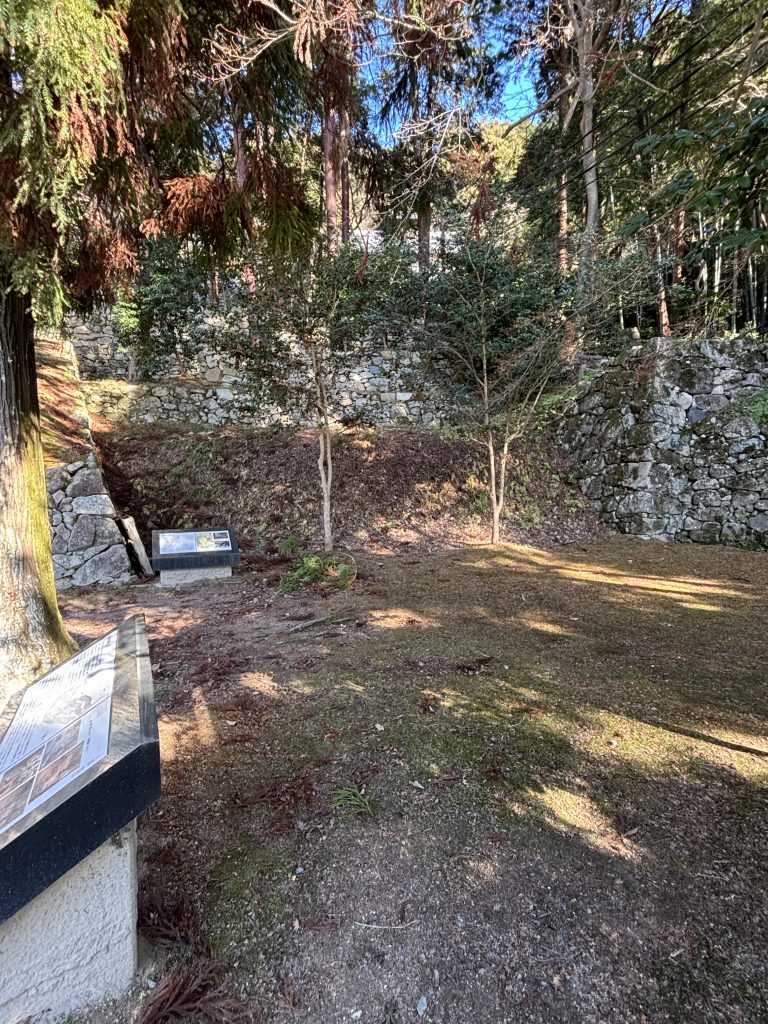 「伝羽柴秀吉邸跡」の上段部。建造物の後の「礎石」が残っている