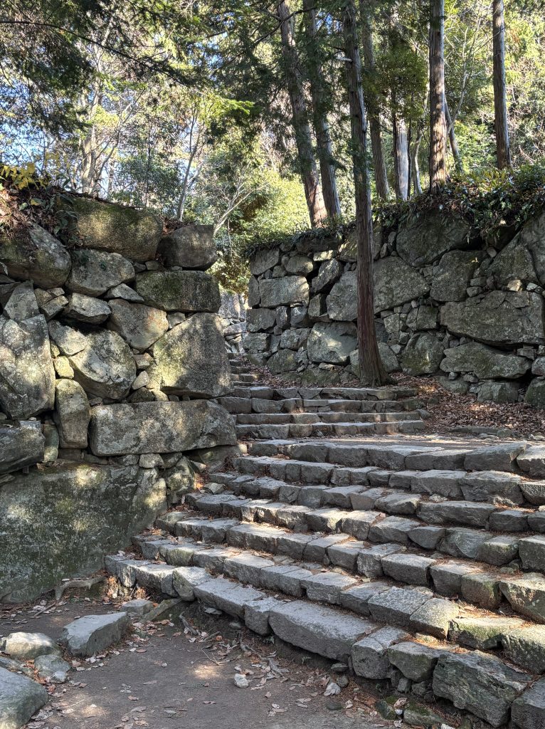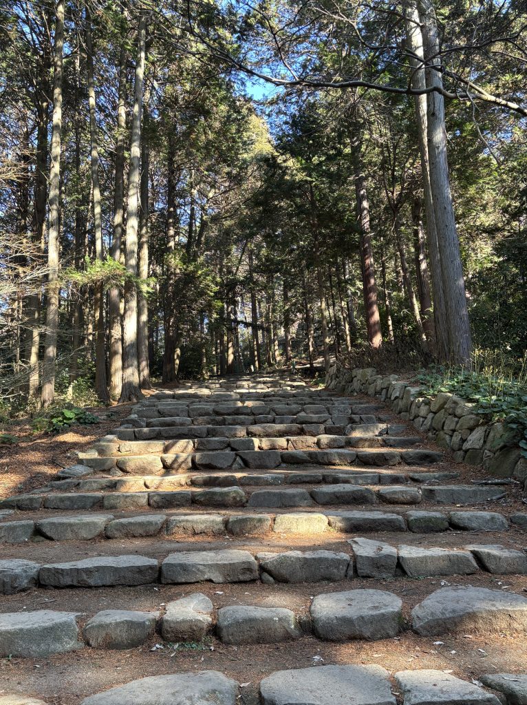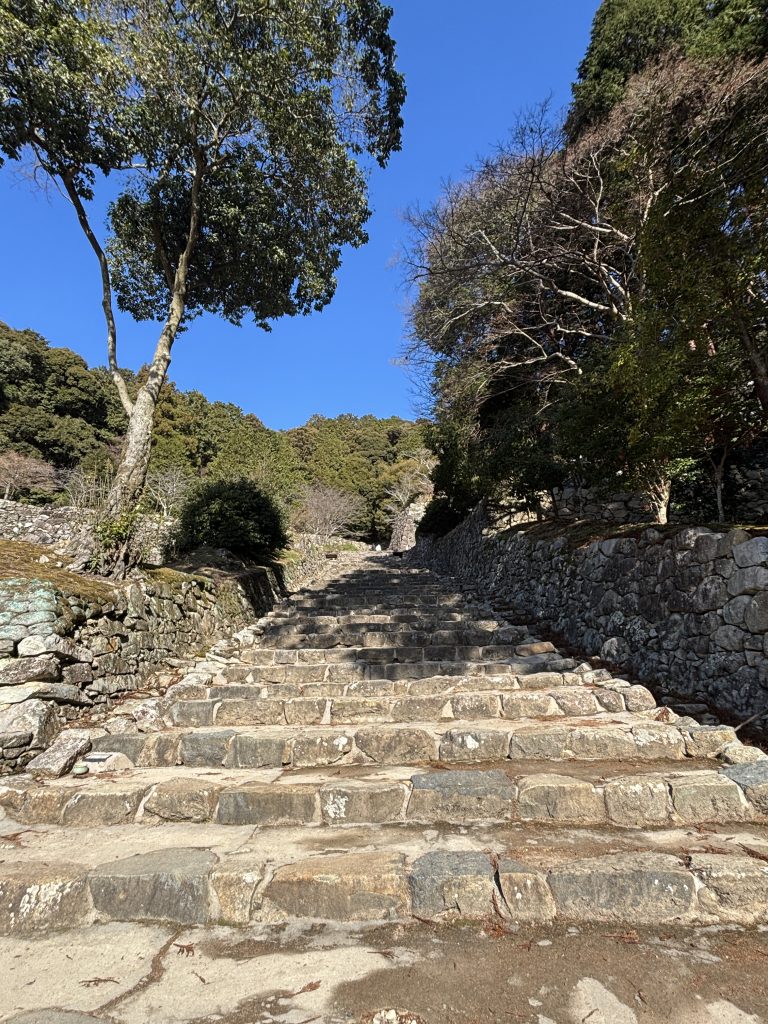 威風堂々として大手道。これだけストレートの石段は類を見ない